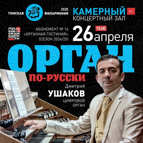 Органист Дмитрий Ушаков продолжает знакомить любителей классической музыки с возможностями цифрового органа итальянской фирмы Viscount, который был подарен филармонии в 2021 году. Компактность и универсальность инструмента позволяют разместить его в Камерном зале. Интимность пространства, возможность вблизи наблюдать за игрой музыканта и обусловили название нового филармонического абонемента «Органная гостиная».