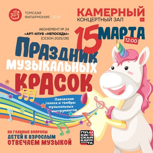 На празднике музыкальных красок эта яркая, мощная, выразительная палитра звучащих чудес представит гостям Камерного зала самые известные музыкальные произведения классической и современной музыки, а также любимые детством напевы.