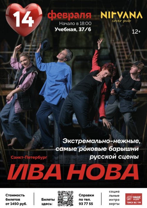 ИВА НОВА - яркий и самобытный девичий бэнд из Питера. Про них много можно говорить, но лучше один раз услышать и увидеть. Играют виртуознейший микс из славянской этники, рока, электро и многих других жанров. На сцене - кроме традиционных инструментов - аккордеон и стиральная доска. ИВА НОВА - частая и желанная гостья в Европе. У группы более десятка альбомов. Шоу группы - отдельная история. Каждая песня - как спектакль. Крутые сценические образы. Искрометно и неожиданно нежно, порой хрупко, но всегда - невероятно драйвово и экстремально эмоционально, - все это ИВА НОВА.