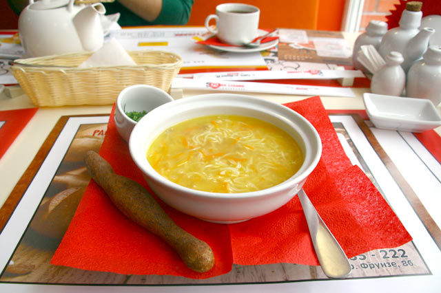 Через 5-7 минут к нам на стол пожаловал и куриный суп с лапшой. Как и салат, он был весьма неплохим на вкус.