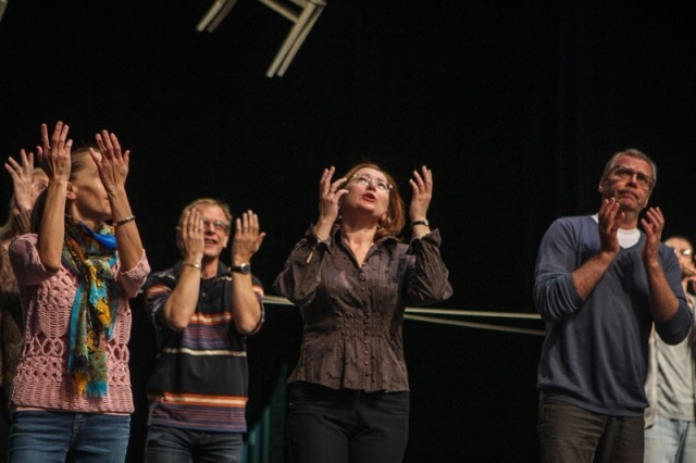 — Не только потому, что она шла столько лет, просто без свадебного танца из этого спектакля мы не смогли обойтись! — признался Андрей Сидоров. — Герои нашей истории, директор и два актера, создающих труппу, смотрят танец и говорят: «А что бы это таких молодых и заразительных нам не позвать в Сибирь?». И пара соглашается поехать с ними.