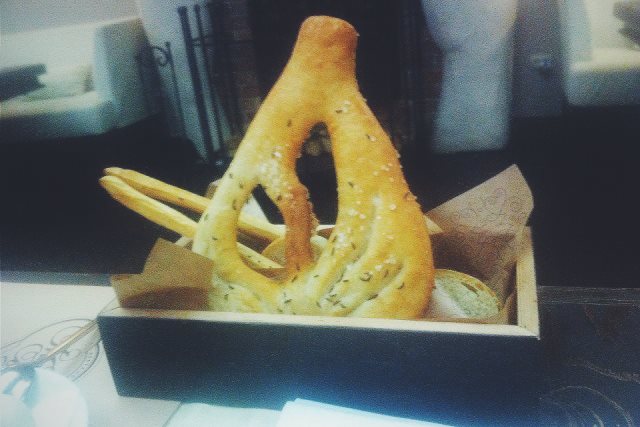 Лазанья была украшена затейливыми пластинками сырной корочки, в супе приятно похрустывали семечки, а ближе ко дну тарелки были обнаружены щедрые залежи вареного лосося. Отдельного упоминания достойна хлебная корзинка, которая подается бесплатно вместе с горячими блюдами. Хлеб выпекается прямо здесь, в ресторане. Он был свежеиспеченным, тёплым, разного вида — в корзинке лежали и крендели с семечками, и хрустящие хлебные палочки с кунжутом, и зеленоватого (видимо, благодаря добавленному в тесто шпинату/травам) цвета багет.
