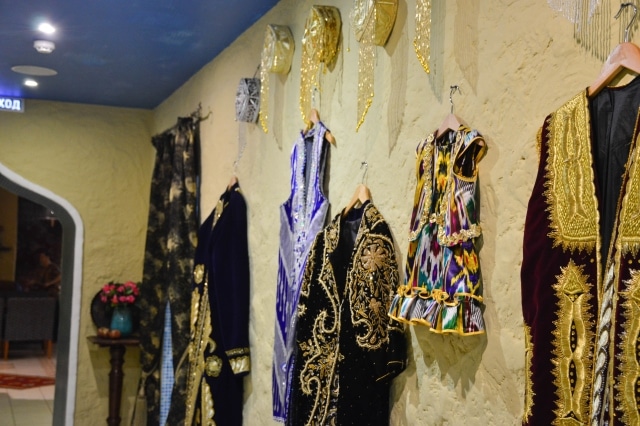 Интерьер: Если описать двумя словами — восточнее некуда. Обилие тканых ковров, кувшинов и национальной одежды, развешанной на стене по направлению к гардеробу, создает впечатление какого-то музейного пространства — впрочем, очень уютного. Официанты здесь одеты в шаровары. Этой участи избежали кальянщик и охранник, которые спокойно расхаживают в штатском.