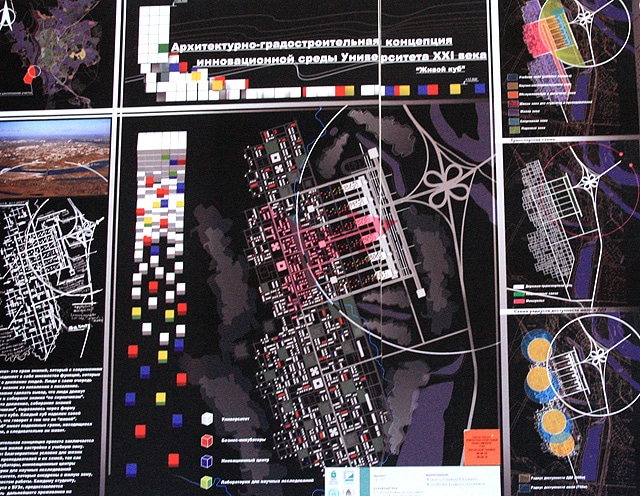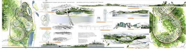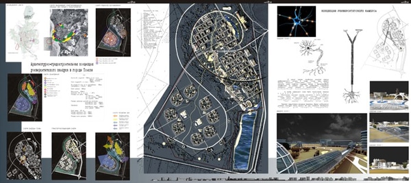Первый проект разработан под руководством Сергея Худякова и предлагает архитектурно-градостроительное решение университетской среды, в которой каждый человек должен иметь все необходимое для комфортного проживания.