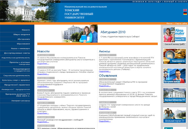 Что касается Томского госуниверситета, то в рейтинге классических высших учебных заведений России по итогам 2009 г., в котором оценивались 88 университетов, ТГУ занял шестую позицию, уступив лишь Московскому государственному университету им. Ломоносова, Московскому физико-техническому институту (государственному университету), Санкт-Петербургскому государственному университету, Российскому университету дружбы народов и Южному федеральному университету.