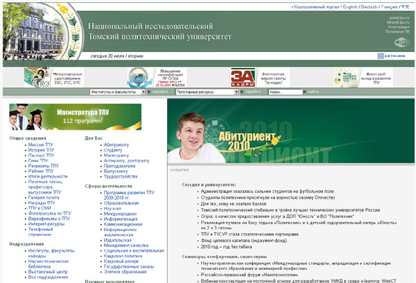 В мониторинге прозрачности российских вузов для абитуриентов, делавшемся по сайтам учебных заведений, Томский политехнический университет занял 3-е место. Он вошел в 1 категорию "победителей и призеров", набрав, соответственно, 125 баллов.