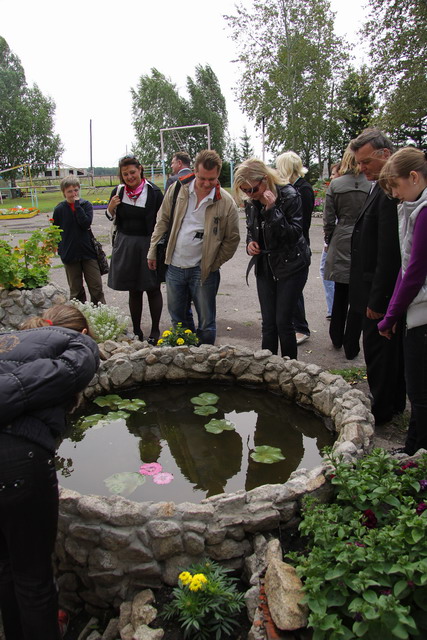 Кстати, все, что сделано здесь - и фонтаны, и клумбы - построено на деньги района, а ухаживают за ними абсолютно все жители села. А еще в Старой Ювале пекут вкусные пирожки и продают их на миниатюрном сельском рынке по пять рублей штука, вместе с козьим молоком, ягодами и огородными дарами: