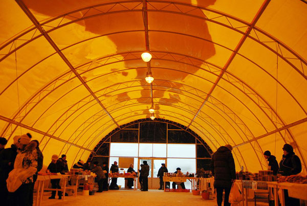В новые павильоны переехали три из одиннадцати торговых площадок, «доживших» до зимы (летом их было 16) - возле Дворца спорта, стадиона «Восход» и в Академгородке. По замыслу городской администрации новые тенты были призваны создать более комфортные условия как для продавцов, так и для покупателей.
