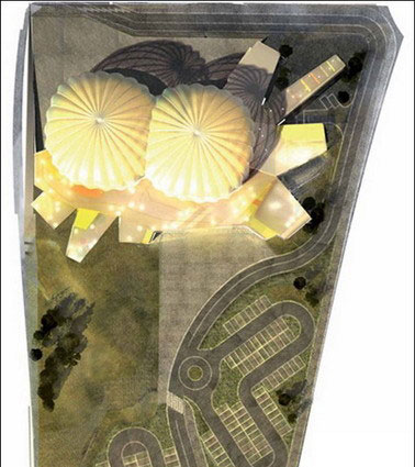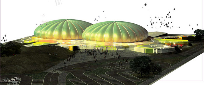 Нестандартное решение вопроса о размещении ярмарки предложили испанцы: архитектурная компания Andres Jaque Architects разработала проект павильона Indoor Agora для ярмарок в испанском городе Касерес. Этот павильон будет сделан в виде двух огромных палаточных тентов – зефирин: