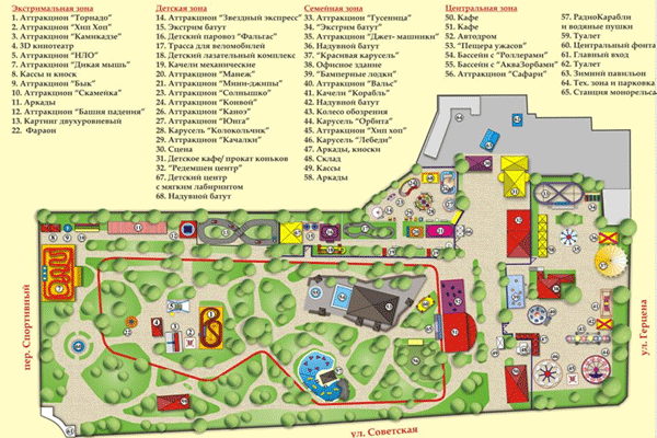 К примеру, т.н. "молодежную зону", где уже стоят аттракционы "Фараон" и "НЛО", решено усилить "Дикой мышью", "Летающей скамейкой" и 32-метровой "Башней свободного падения". Поскольку башня будет располагаться недалеко от входа рядом со стадионом "Труд", то в дни футбольных матчей очередь на нее будет большая, считают авторы проекта. Здесь же появятся еще несколько аркадных игровых автоматов "Молодежную" или "Экстрим-зону" предполагается назвать "Фантастическое путешествие".