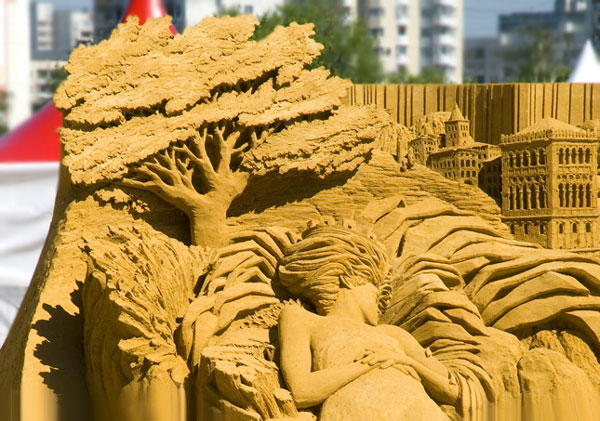В их числе — Фергус Малвени из Ирландии, Ангерон Дэвид — из Бельгии, Радек Зини — из Чешской народной республики, представители Канады, Украины и Болгарии, Сударсан Патнайк из Индии, недавно прославившийся скульптурой на смерть Усамы бин Ладена. Призерами стали Вячеслав Борецкий из Польши (3 место), Вилферт Стайгер из Нидерландов (2 место), итальянец Леонардо Огалини (1 место за скульптуру «Сон об Италии»). Кстати, то, что именно эта скульптура победила, меня не удивило — еще на стадии создания, когда у каждого из художников было готово по 30-40% будущего монумента, работа Оргалини резко выделялась своей филигранностью, обилием мелких резных деталей и изяществом: