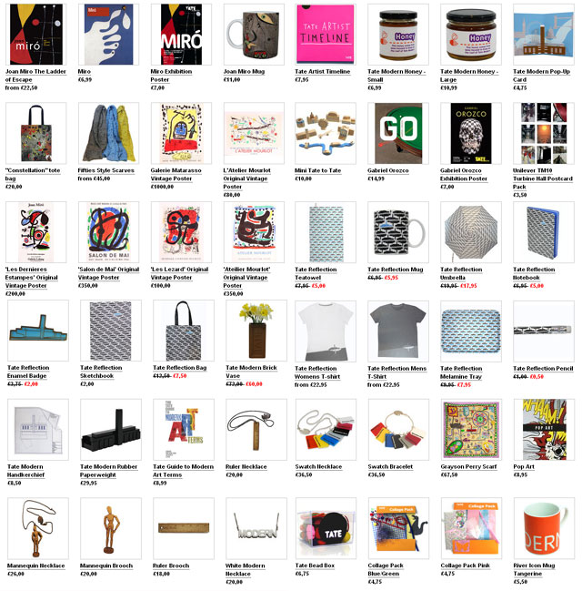 Сувениры из галереи Тэйт, которые любой желающий может приобрести на ее официальном сайте