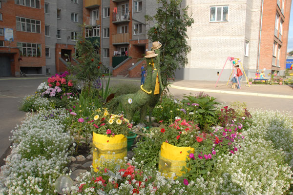 Вот такие аисты поселились во дворе дома по ул. Транспортная, 7. 1-е место в номинации "Лучший цветник, клумба"