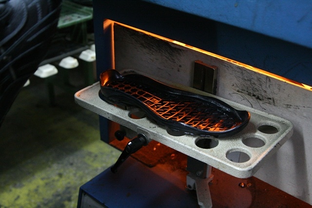 В это же время в ботинок вставляется жесткая пластиковая пластина, которая будет сохранять его форму в дальнейшем. Все происходит в заданный интервал: до минуты.