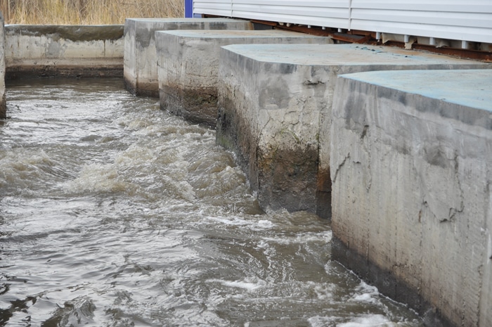 Сначала вода попадает в узел механической очистки - приемную камеру - по четырем каналам: два из них принадлежат городу и по одному – Томскнефтехиму и ТГК-11. Из-за сбрасываемой химии здесь самый стойкий и неприятный запах. По двум коллекторам, диаметром 1200 мм каждая, городские стоки уходят в камеру смешения, откуда по двум каналам сливаются к пяти решеткам.