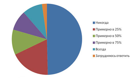 Бывали ли случаи, когда Вы платили за получение талона техосмотра на автомобиль и не присутствовали лично на процедуре осмотра? Если да, то в каком проценте случаев Вы так поступали?