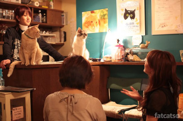 И еще об одном интересном кошко-факте: в Японии существует достаточно распространенный формат кафе - кошачье кафе. Там можно посидеть с друзьями, выпить чай-кофе, и при этом вас будут окружать кошаки в количестве от 20 и выше, работая "мурчалками" и "поднималками" настроения. Сейчас только в Токио насчитываются десятки кошачьих кафе, а по всей Японии их, вероятно, около сотни. В кафе висит доска с фотографиями каждой кошки, на которой можно прочитать имя, название породы, узнать возраст и особенности характера. В Токио, где не только долгие рабочие часы, но и тесное и дорогое жилье (а часто – просто запрет домовладельцев) ограничивают возможность завести домашних животных, кошачье кафе является культурным достижением: