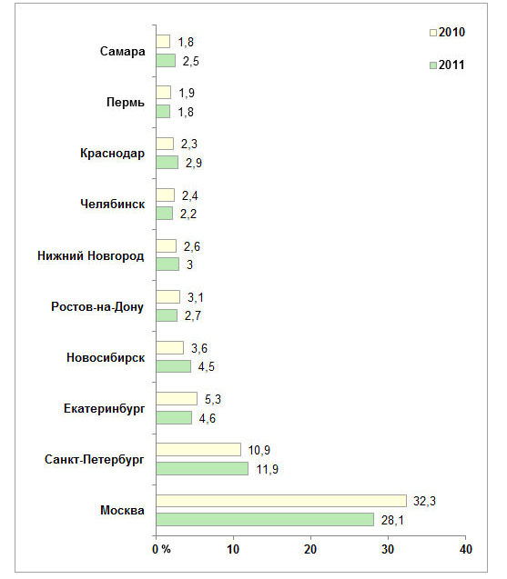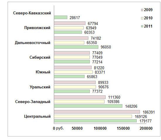 Средняя цена разработки условного корпоративного сайта в 2011 году также увеличилась и составила около 100 000 рублей. При этом средний показатель может колебаться в зависимости от города: от 53 000 рублей (Волгоград) до 230 000 рублей (Москва).