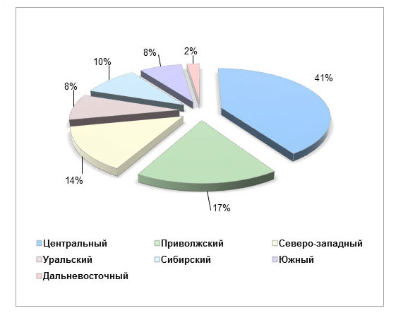 Распределение веб-студий по федеральным округам: