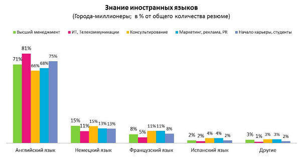 Служба исследований HeadHunter провела сравнительный анализ в пяти профессиональных сферах и выяснила в какой из них лучше всего обстоит ситуация со знанием иностранных языков.