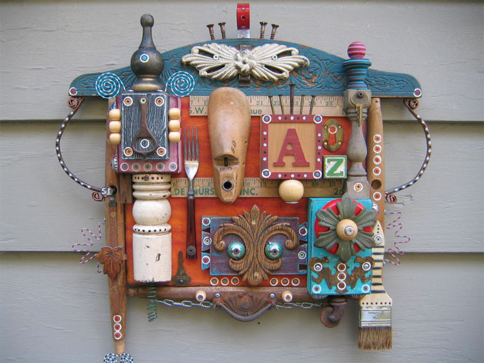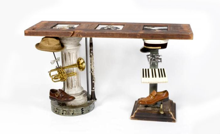 Бенджамин Баллинс из Нового Орлеана получил степень бакалавра изящных искусств и степень по графическому дизайну, и совмещает деятельность скульптора с работой фотографа. Бенджамин-фотограф любит текстуры и яркие цвета, Бенджамин-скульптор - объединять разрозненные "найденные объекты" в готовый образ на заданную тему. Чтобы приобрести нужный опыт для работы с разными материалами, кроме художественного образования, Бенджамин получил и навыки в строительстве, обучаясь в течение нескольких лет самым разным профессиям из этой сферы. Многие его работы, в отличие от начинающих хенд-мейдеров на Etsy (чьи творения можно взять за 50-100-200 долларов), уже перевалили "тысячную" планку. Среди героев арт-объектов Баллинса много рыбаков, и конечно, человек из Нового Орлеана не может не потрогать тему джаза: