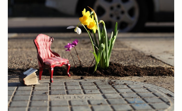 Фото прекрасных миниатюр, произросших из асфальтовых трещин на дорогах Лондона и успевающих рассказать целую историю своим зрителям, несмотря на скромнейший масштаб, уже видели многие. Эти чудесные работы принадлежат Стиву Вину, одному из самых известных "партизанских садоводов", ведущему блог "садовника выбоин". Его работы живут недолго, но остаются на многочисленных фото и вдохновляют других на креативное и необычное озеленение своих городов: