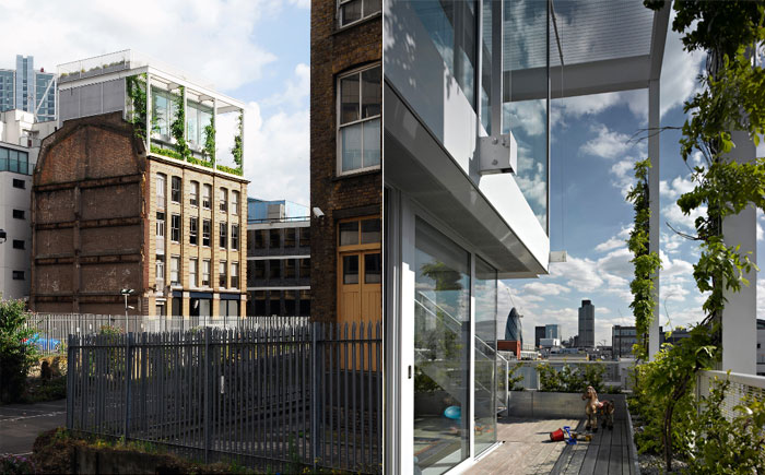 Roof Garden Apartment - надстройка из апартаментов с садом, сделанных над старинным лондонским кирпичным зданием архитектурной командой Tonkin Liu