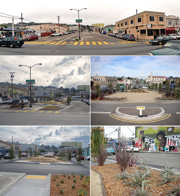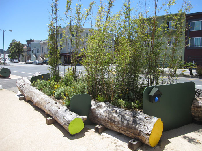 Очень показателен в этом плане "Тротуар для парков - Pavement to Parks" - проект мэрии, Департамента общественных работ, отдела планирования и муниципального агентства перевозок Сан-Франциско. Вдохновившись успехами Нью-Йорка в деле городского озеленения, власти Сан-Франциско решили занять под небольшие парки и зеленые зоны неиспользуемые места на перекрестках или улицах. Дороги и проезды занимают 25% пространства города, и потеснить их, разместив общественно полезные площадки для отдыха в самых различных вариациях - от стоянок для велосипедов и простых газонов до мест, где можно посидеть на раскладном стуле и подышать воздухом, дело нужное и важное: