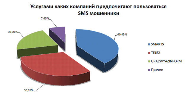 Если посмотреть, услугами каких компаний чаще всего пользуются мошенники, чтобы рассылать SMS, то картина выглядит так: