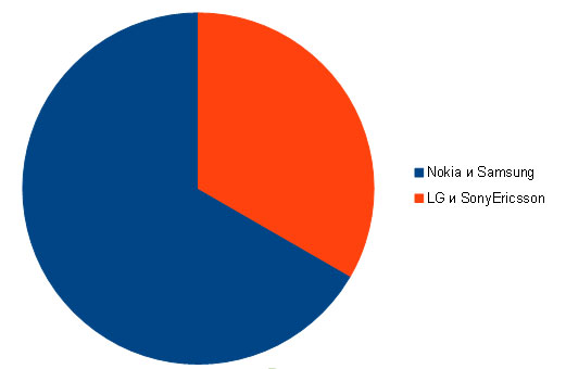 Среди производителей мобильных устройств наибольшей популярностью пользуются компании Nokia и Samsung, на их долю приходится около 70% всех телефонов в сети Tele2. С большим отставанием от лидеров третье место занимают компании LG и SonyEricsson.