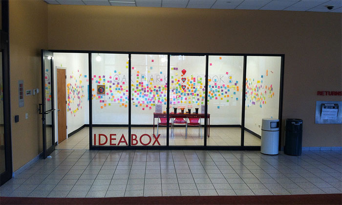 В одной из публичных библиотек в Oak Park (Иллинойс, США) возле входа для посетителей находится небольшая (9?x13?) застекленная комната, которая называется Idea Box—Вместилище Идей. В этой комнате любой библиотечный пользователь может создавать интерактивные инсталляции, обновляющиеся каждый месяц. Во время Месяца Национальной Поэзии библиотечные пользователи писали тексты своих стихов на стенах комнаты, а в другой месяц создавали здесь скульптурные композиции и рисовали картины. В стены комнаты вмонтированы сотни светодиодов, что позволяет посетителям создавать свои собственные комбинации сенсорного освещения.