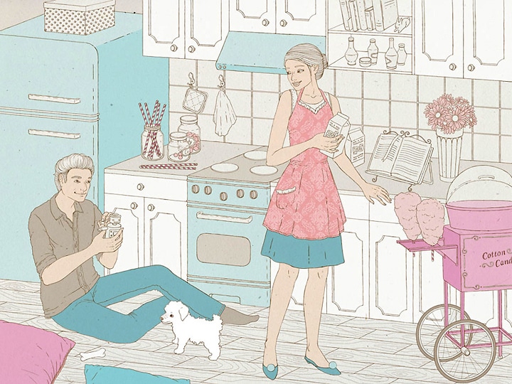 «Это как арт-объект, поле для внекоммерческого творчества. Тема 50-х, потому что именно в те времена женственность, в самых разных ее проявлениях, была на пике, она ценилась и развивалась, девушки вдохновляли и так хорошо владели искусством создания уюта и красоты», - отмечают в Love Home Love.