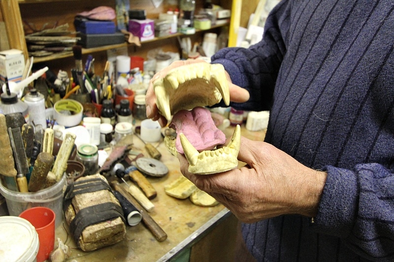 - Все, кроме шкуры и когтей, у чучела искусственное! Остальное либо покупают, либо делают самостоятельно. Я сам делаю языки, зубы, раскрашиваю губы. У меня есть для этого специальный художественный аэрограф. Языки, кстати, создаю из особого, мною разработанного состава.