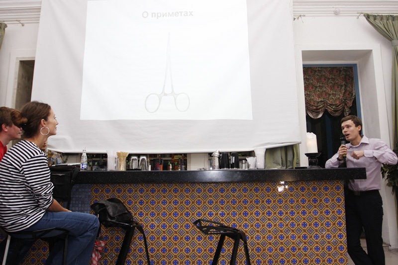 Печа-Куча собирает тех, кому есть, что рассказать о своей жизни, работе, интересных событиях. "Язык до аллеи Гоголя доведет" - презентация Владимира Мельникова, организатора благоустройства улицы Гоголя, или как он сам себя называет - "народного дворника". А Елена Бурова, создатель томского фестиваля короткометражной оперы, выступила с презентацией своего проекта. Александр Лунев поведал о том, как тратить деньги. Историю о том, как работается микрохирургом, рассказал Андрей Байтингер и, в частности, поведал о словаре, которым пользуются медики: челюскинцы – это челюстно-лицевые пациенты; консервы - те, кто на консервативном лечении; ГПУ – основной метод исследования "глаз-палец-ухо"; гармошка – аппарат искусственной вентиляции легких; люська – пациенты с сифилисом; дискотека – это когда в пятницу на дежурстве много скорых с мигалками.
