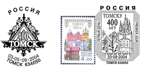 Для марки «400 лет Томску» был выпущен штемпель первого дня.