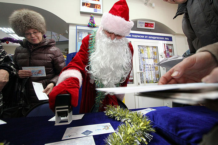 В середине недели 12 декабря в полдень на Томском Главпочтамте царил непривычный ажиотаж. Одни посетители спешно покупали новогодние марки, другие, торопясь, подписывали открытки, третьи – звали Деда Мороза. В эти минуты здесь начиналась церемония первого в истории Томска новогоднего спецгашения.