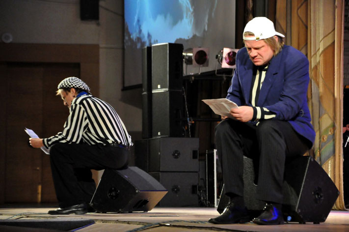 В.Г.: – В нашем концерте есть номер, который почти полностью написан нашим коллективом. Это «Клуб анонимных поэтов», такой поэтический баттл. По-прежнему помогают нам авторы, которые с 1996 года писали для команды. Я говорю об Иване Филиппове и Максиме Туханине. Они подбросили нам несколько идей, предложили пару интересных ходов и для того номера, что мы написали сами. Еще мы сотрудничаем с Алексеем Эксом.