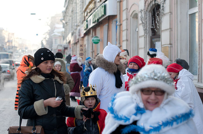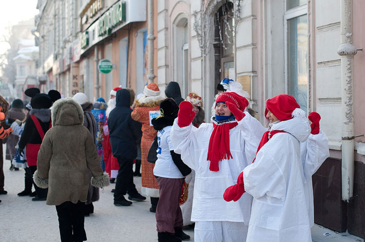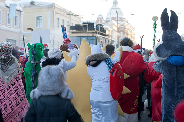 Никакой мороз не мог испугать участников и зрителей - в костюмированном шествии приняло участие более 300 человек, а на открытие главной городской ёлки на пл. Новособорной собралось более 1000.