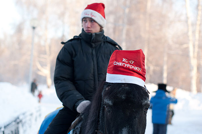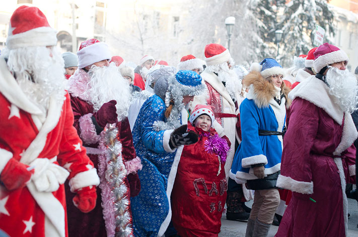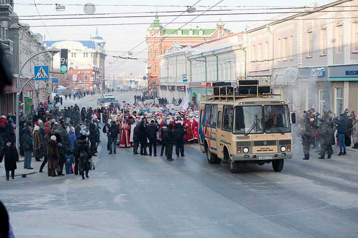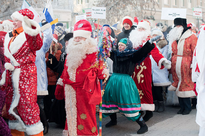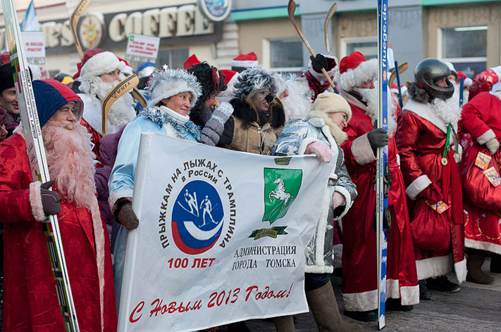 Третий по счету парад Дедов Морозов прошел в Томске в минувшее воскресенье, 23 декабря. Деды Морозы и Снегурочки в сопровождении сказочных персонажей прошли по центральной улице Томска под лозунгом «С Новым годом! С новым спортом!».