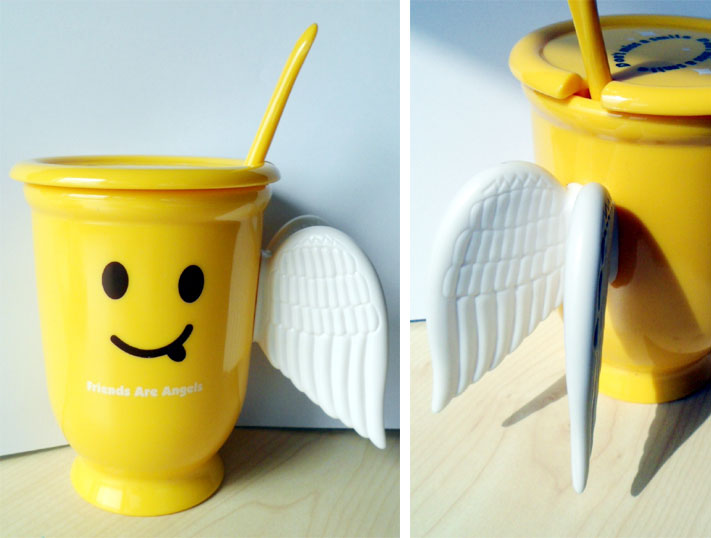 «Друзья - это ангелы», - гласит надпись на кружке. Что ж, логично. Хотя и родители обычно органичны в этой роли (а у кого-то, может, и домашние животные).