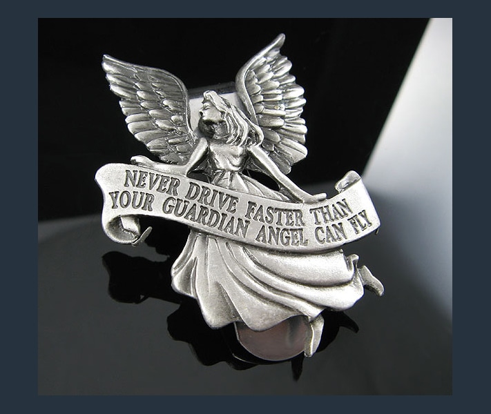 За рубежом распространена традиция вешать в машине не иконки, как у нас, а ангела-хранителя (The Guardian car angel). Их выпускают в огромном количестве с различными надписями, например: «Никогда не гони быстрее, чем умеет летать твой ангел-хранитель»: