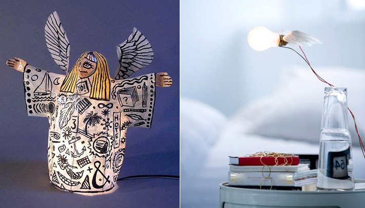 Один из самых известных объектов от дизайнера Инго Маурера - лампочки с крыльями и бумажно-проволочная лампа от Джона из Yummy mud puddle: