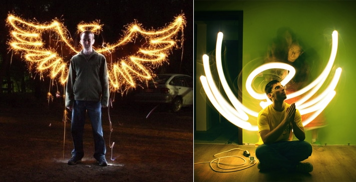 Эксперименты с лайт-граффити тоже позволяют создать мгновенный костюм ангела: