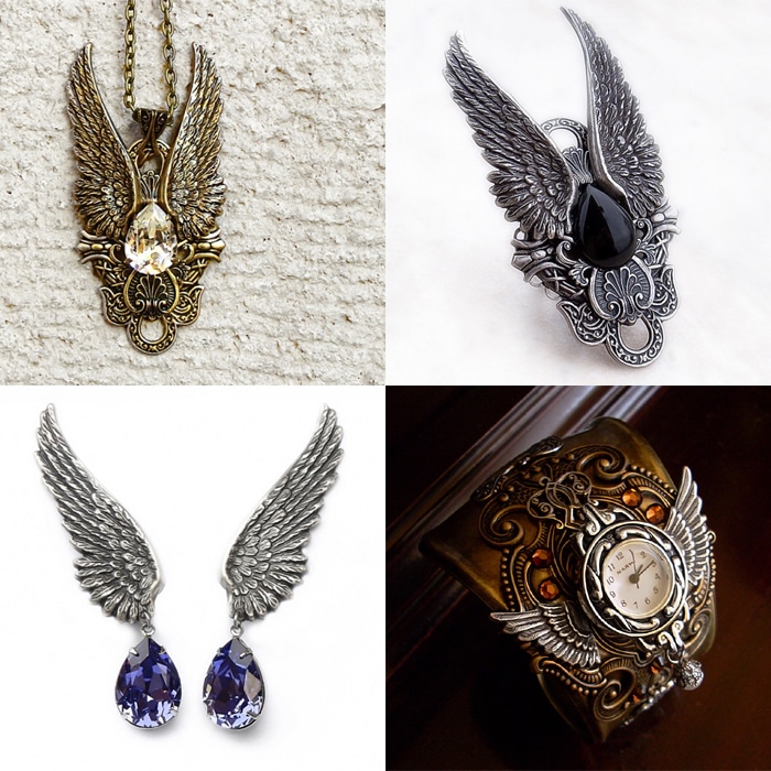 А еще ангельские крылья входят в боевой арсенал любителей стимпанка: 50% хенд-мейд бижутерии в этом стиле обязательно осеняет своего владельца крылом небесного жителя: