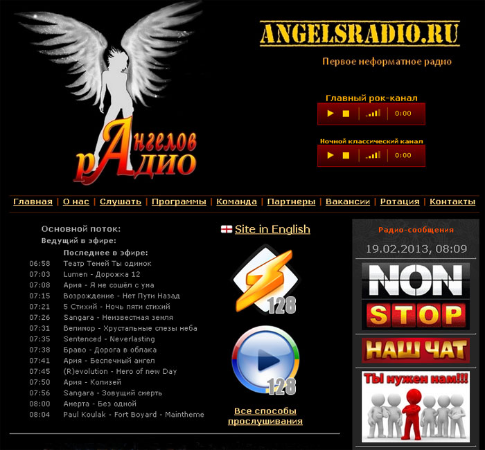 Интересен и сайт "первого неформатного радио" - "радио Ангелов". Цель создателей – формирование лучшего playlist`a тяжелой музыки, продвижение молодых талантливых коллективов. Радио дает возможность слушать нестандартные композиции, которые тяжело найти на волнах других радиостанций. Описание рубрик весьма домашнее: "Время свободы" - вечерний эфир для возвращающихся с работы и учебы. Готовь супчик, макарошки и заваривай кофейку под приятные мелодии разных жанров".