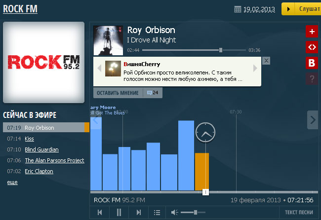Общая проблема интернет радиостанций - не на всех из них можно послушать композиции, звучавшие раньше, иногда плейлист вообще не виден – понятно только, что играет в данный момент, нет возможности добавить трек в избранное.