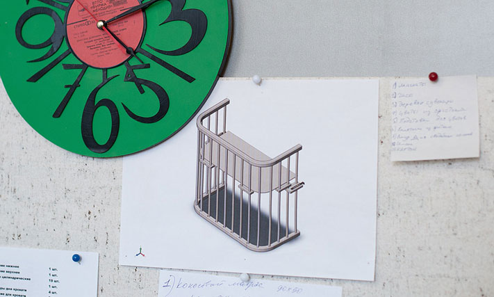 Одним из самых крупных проектов стало изготовление приставных детских кроваток — конструкций, которые с помощью фиксаторов присоединяются ко взрослым кроватям. Получается, что все спят вместе и в то же время отдельно: и нормы гигиены соблюдены и ночью не придется лишний раз вставать к ребенку, но это другая история.