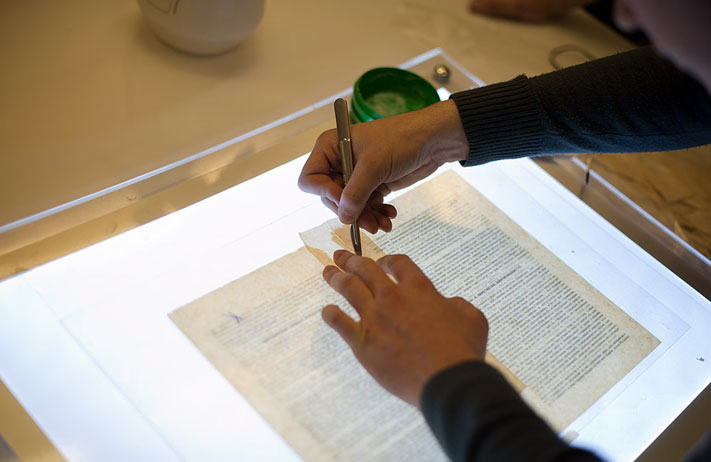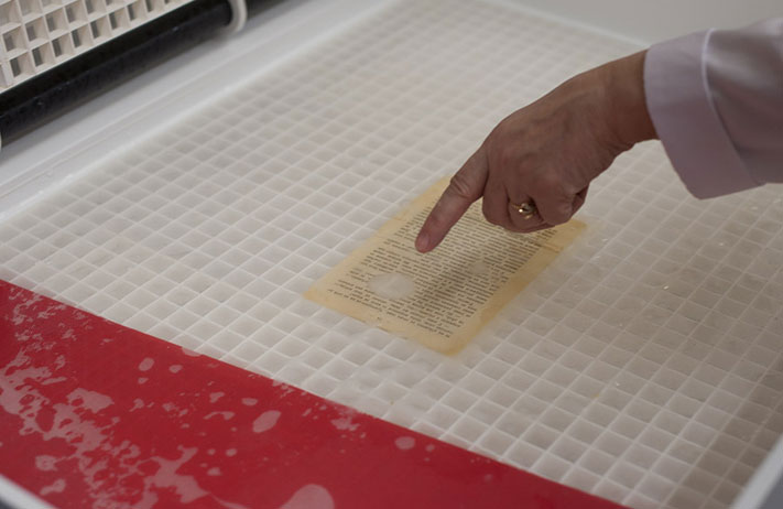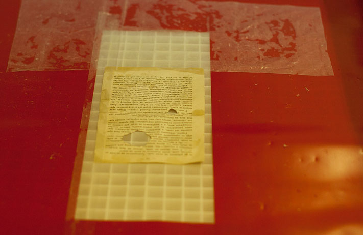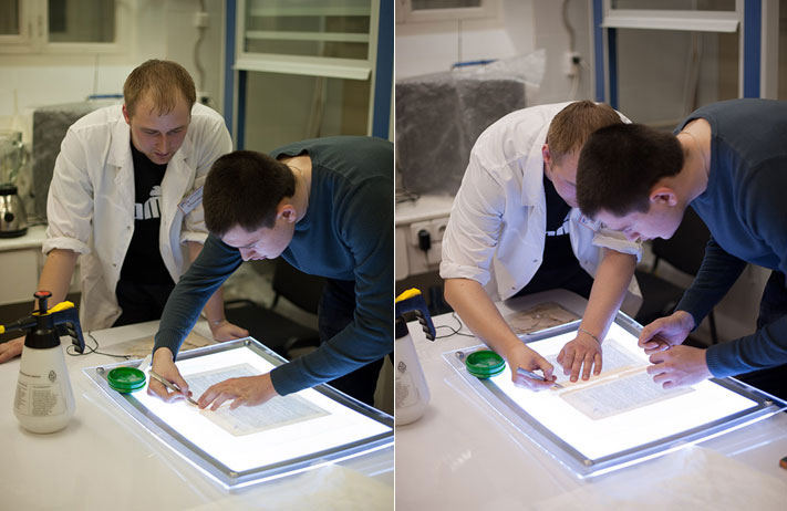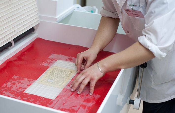 Сотрудники расположенного в бибилиотеке регионального центра реставрации и консервации документов показывали желающим, как на самом деле реставрируются книги. Гости "Библионочи" могли поучаствовать в процессе промывки бумажных страниц и потрудиться над восстановлением их недостающих фрагментов