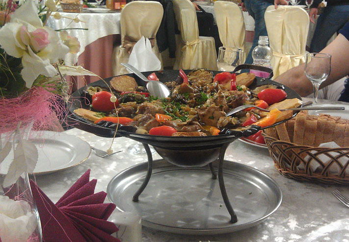 Вся еда уникальна, многие названия с непривычки сложно повторить. В основном, в составе мясо курицы, говядина, конина и баранина. В качестве гарнира подают чеченские галушки и макароны. При любой трапезе на столе будет стоять очень много вкусного хлеба, всех видов. Попробовали мы и очень вкусные и нежные лепешки Хингалш, с начинкой из тыквы. Причем в том кафе, где мы их пробовали, лепешек даже не было в меню, но мы говорили о них, и хозяйка, услышав, сказала, что за 30 минут она сделает их для нас – это конечно же, было приятно.