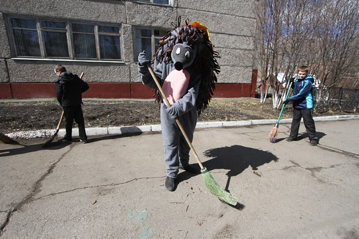 Также в общегородской уборке участвовали ТОСы, выставившие 200 человек, которые в рамках кампании «Томск - чистый город» получили призы и подарки: футболки, значки, магниты с логотипом акции. Символ кампании – Ёжик, посетил 11 площадок городских школ, где трудились порядка 500 человек.